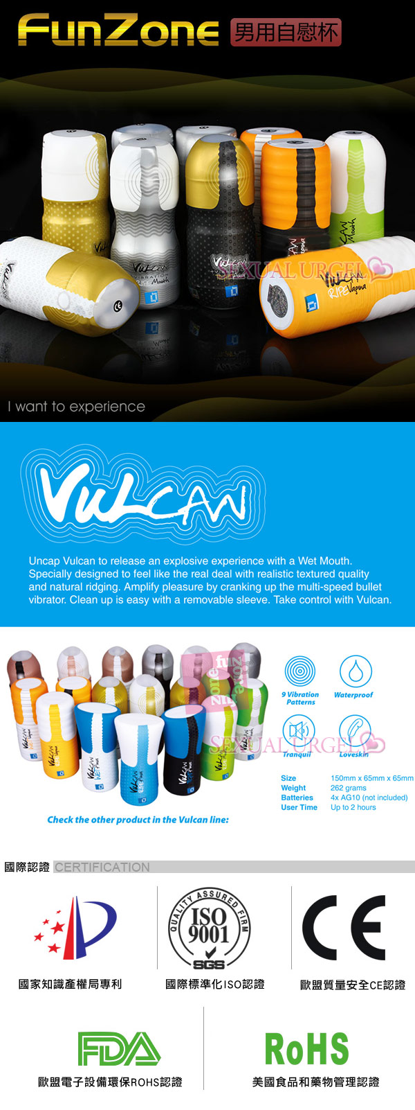 該系列18款多姿多彩的可樂杯均採用全球頂級、觸感極好的虛擬肌膚材質,體型小巧,便於攜帶,是男士居家旅行或商務外出的好伴侶。 funzone可樂杯採用螺旋通道來模擬陰道環境;波浪環紋通道模擬深喉模式;顆粒狀通道模擬後庭環境。摩擦感強烈,陰莖進入後會感到刺激而銷魂。
