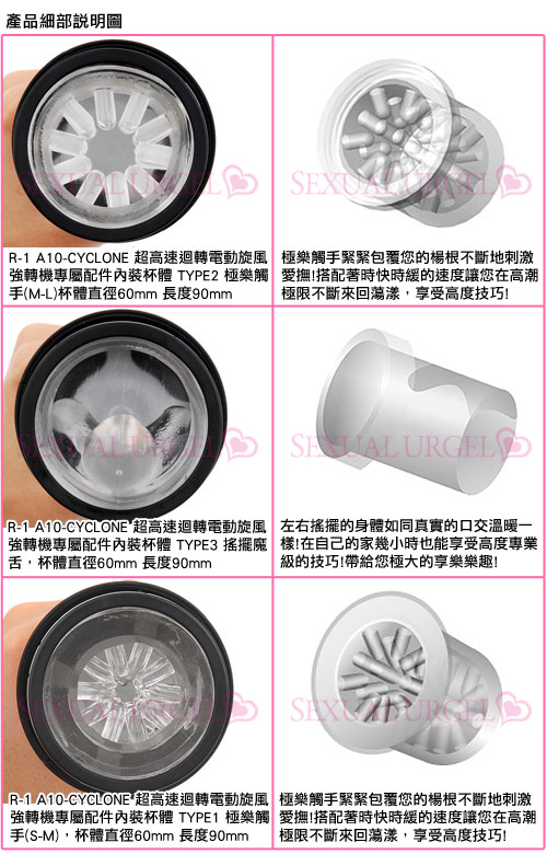 R-1 A10-CYCLONE超高速迴轉電動旋風強轉機專屬配件,內裝杯體TYPE3極樂觸手﹝S-M﹞杯體直徑60mm長度90mm