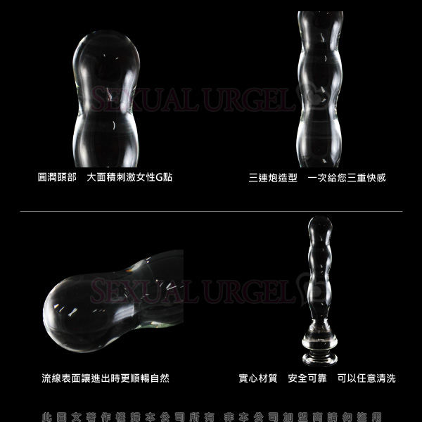 高貴典雅的透明調,晶瑩剔透,橢圓頭形連珠設計,三連炮造型,一次給您三重快感,流線表面讓進出更自然,體驗多重刺激,讓您嘗試帶來另類的高潮....
