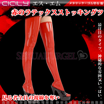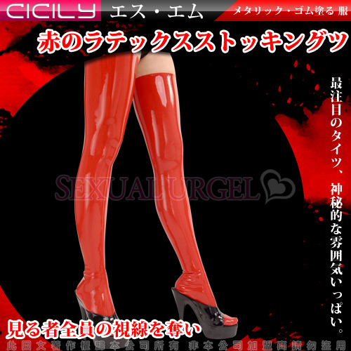 虐戀精品CICILY-長腿戰士-塗膠仿皮 高彈性長襪-紅