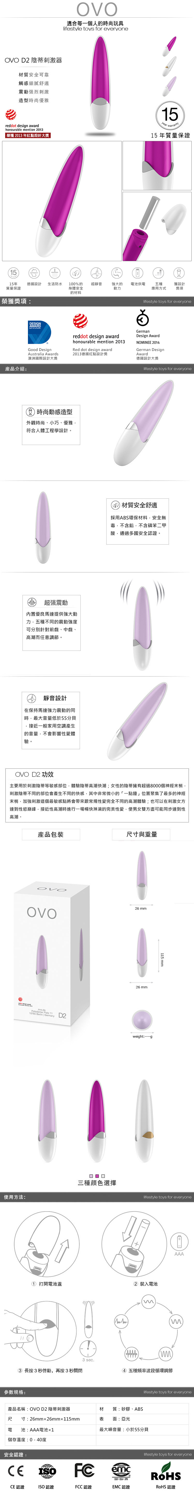 .主商品:德國OVO-D2 火箭型 5段變頻 迷你震動 G點按摩棒-桃紅色X1