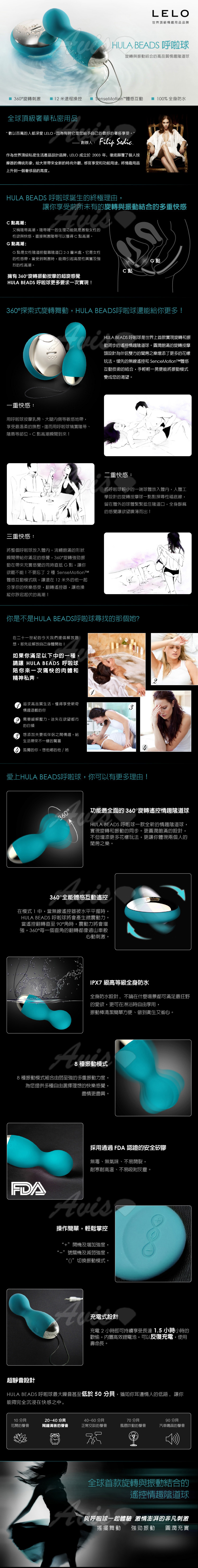HULA BEADS™呼啦球是世界上首款實現旋轉和振動同步的遙控情趣陰道球。將旋轉球輕柔放入體內,強勁振動直接撫慰最敏感的陰唇並向上抵達陰蒂,讓您體驗前所未有的快樂感受。您還可以玩得更盡興一點:將HULA BEADS呼啦球更深入的放入體內,讓上面的旋轉球旋轉刺激G點,下面的振動球則傳達最強勁的振動按摩,8種模式帶來8種不同的激情體驗,每一種模式都可以通過無線遙控輕鬆調節。