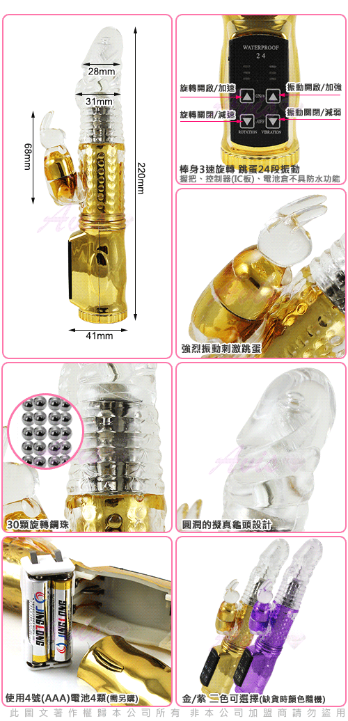 .商品名稱:第三代-魔幻兔兔-電鍍款 72段 滾珠變頻G點按摩棒-金*1