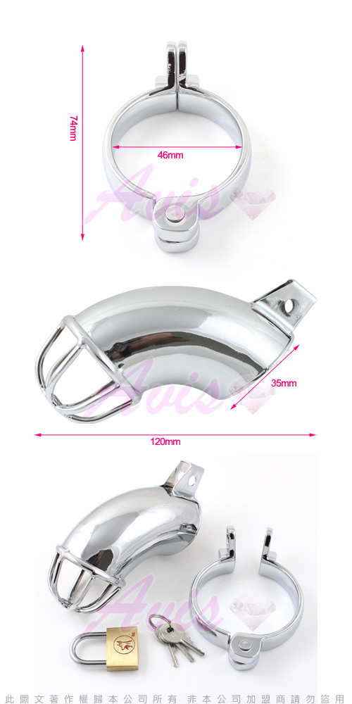 冰冷的金屬,是否降低愛人的欲望?一個金屬鳥籠加上卡環,將愛人牢牢鎖住,流暢的線條,厚實的金屬質感,可以防止手淫等行為,是非常時尚的sm貞操帶,可以全天候長時間穿戴。