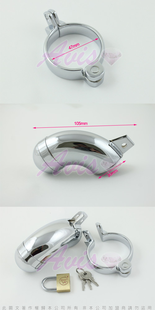 冰冷的金屬,是否降低愛人的欲望?一個金屬鳥籠加上卡環,將愛人牢牢鎖住,流暢的線條,厚實的金屬質感,可以防止手淫等行為,是非常時尚的sm貞操帶,可以全天候長時間穿戴。
