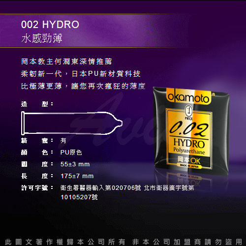 品名:岡本002-HYDRO 水感勁薄保險 1入隨身包組