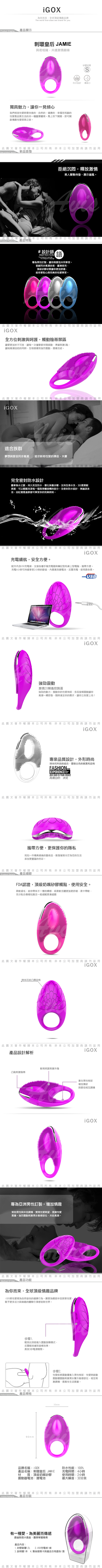 香港IGOX JAMIE 刺環皇后 JAMIE 20頻 男用震動環 USB充電 魅紫