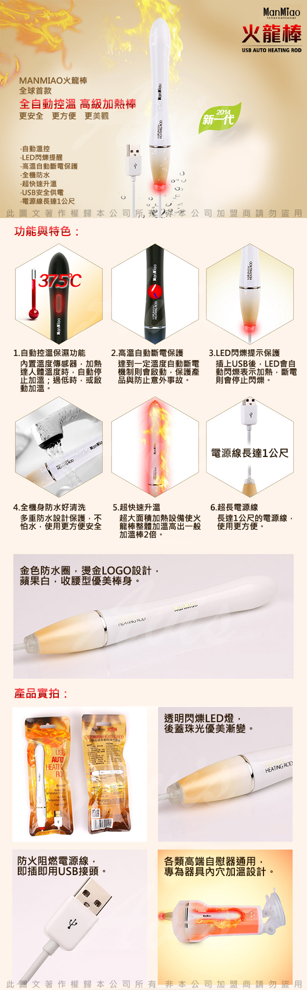 · 商品名稱:情慾火龍棒 USB高級加熱加溫棒 全自動溫控