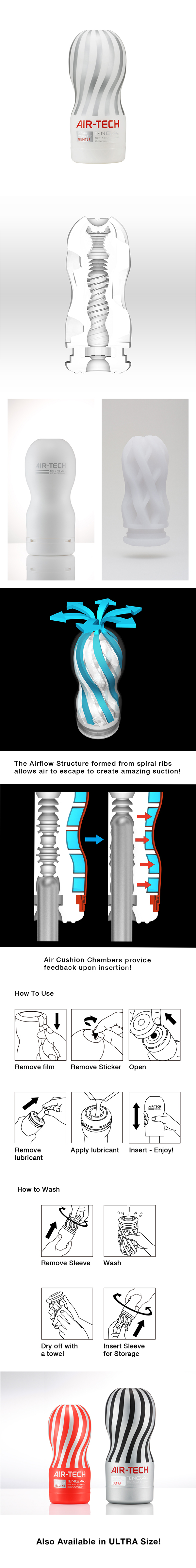 AIR-TECH是一款以TENGA真空自慰杯為原型,AIR-TECH採用TENGA著名的吸吮原理,AIR-TECH系列內部沒有海綿