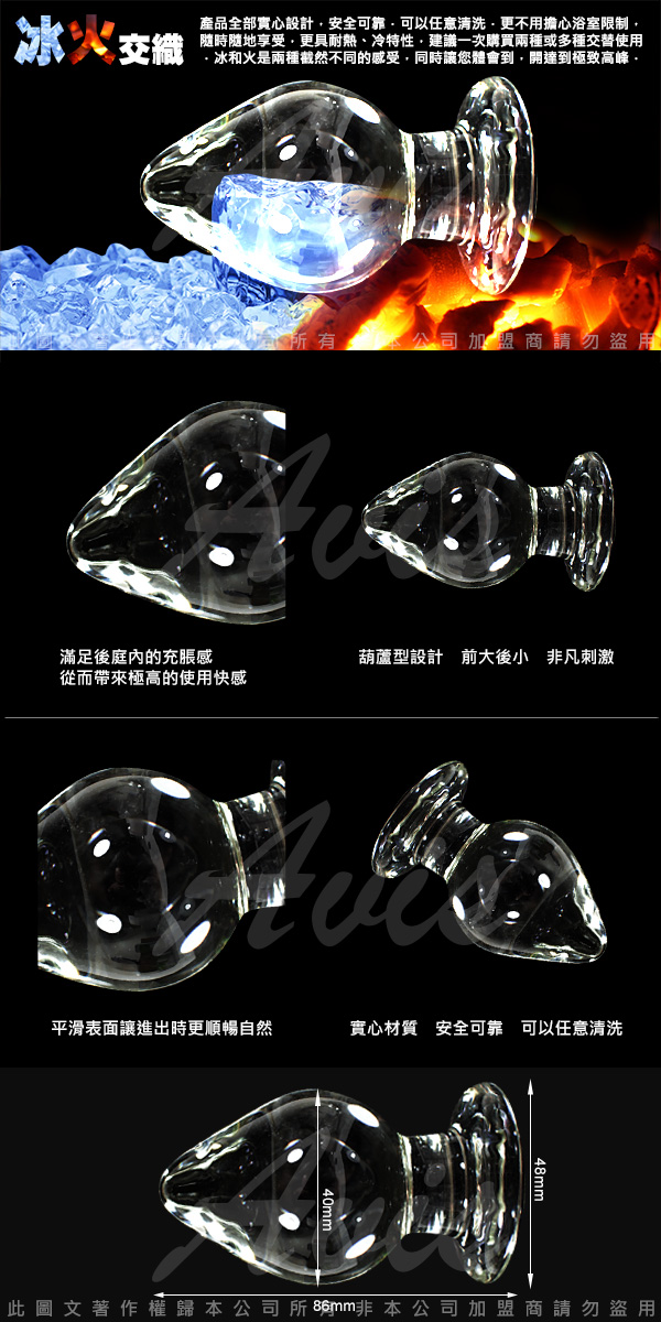 GLASS 重量級 黑羽妖精 肛塞 玻璃水晶後庭冰火棒 Anus 47