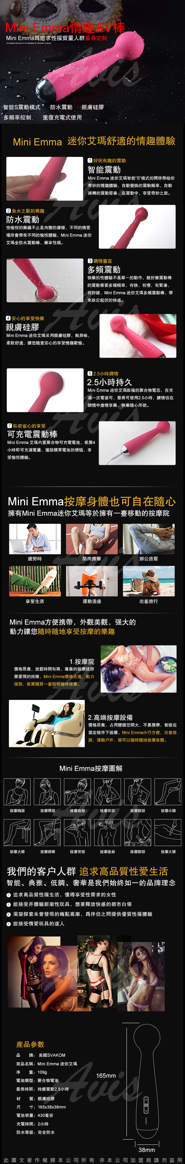 .商品內容:美國SVAKOM 迷你艾瑪 MINI EMMA 智能模式 震動AV棒 X1