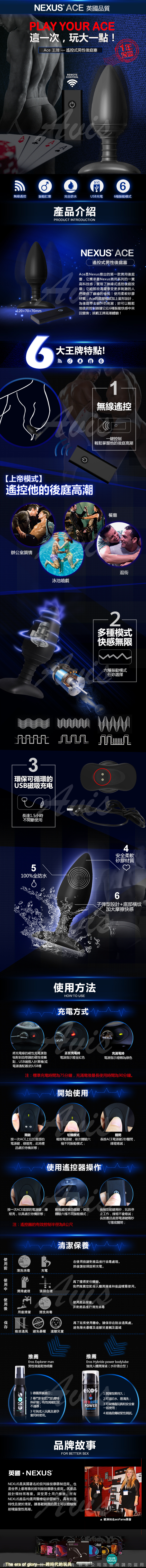 .主商品:英國Nexus Ace艾斯 無線遙控變頻震動肛塞 USB磁吸充電