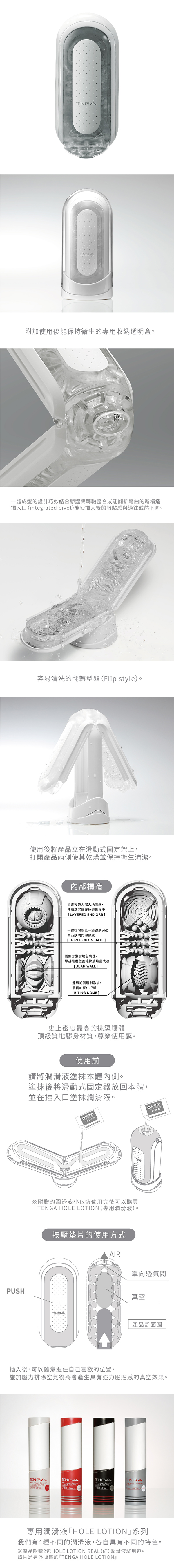 最新一代TENGA FLIP 0(ZERO)延續前幾代可重複使用性外,往兩側按壓來增加杯內真空吸引力的功能自然也保留的徹底