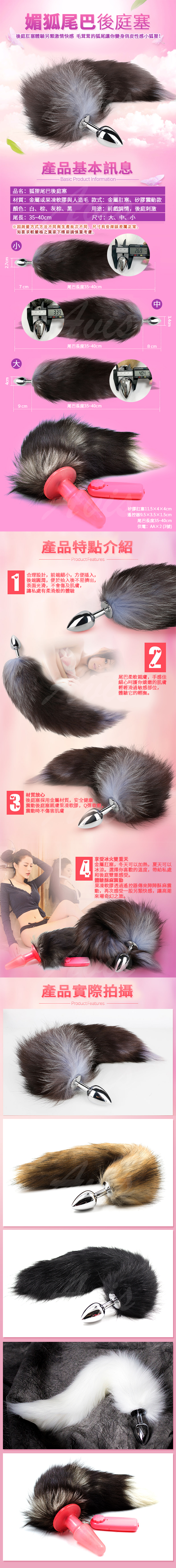 .商品材質:金屬肛塞 + 人造狐狸毛