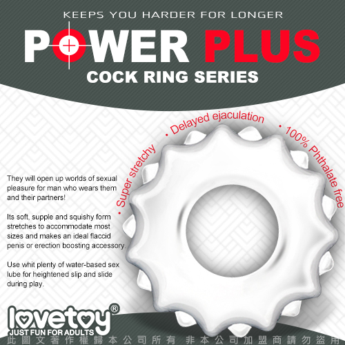 .主商品:POWER PLUS 延時加強鎖精環 瓶蓋型 透明