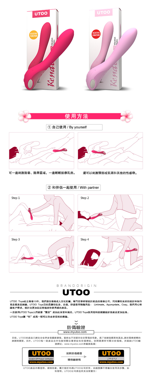 .主商品:香港UTOO KENDO 41度C智能矽膠10段變頻震動溫感棒 桃紅