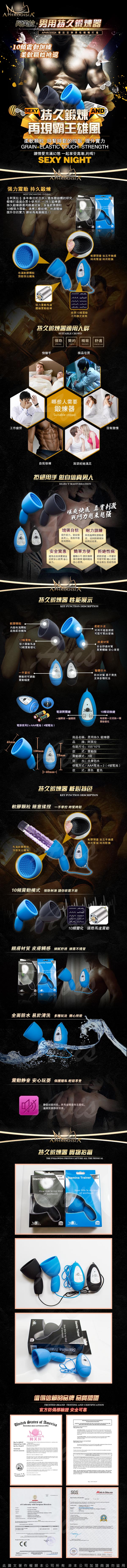 .主商品:APHRODISIA 霸王雄風 10段變頻震動延時鍛鍊器 藍