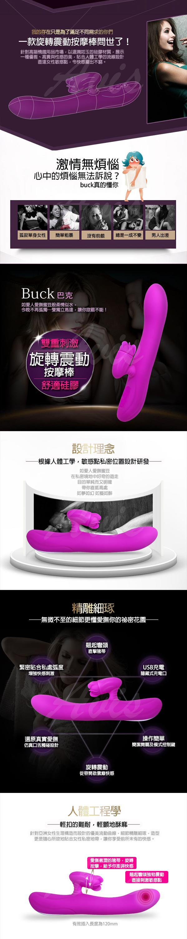 .商品名稱:Buck 巴克  4頻旋轉 7頻震動 智能迴轉 雙重刺激G點按摩棒 USB充電