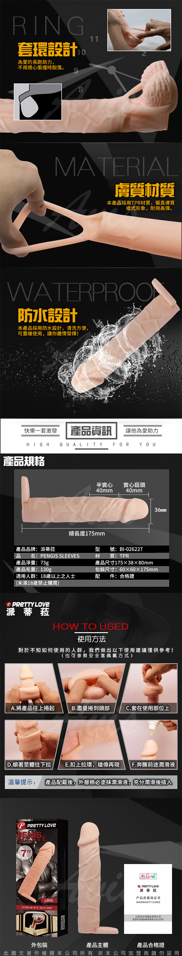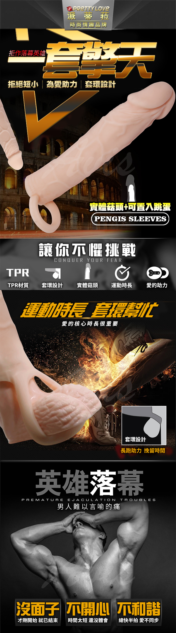 .商品名稱:PRETTY LOVE 一套擎天 仿真莖肉感英雄猛男套 長型