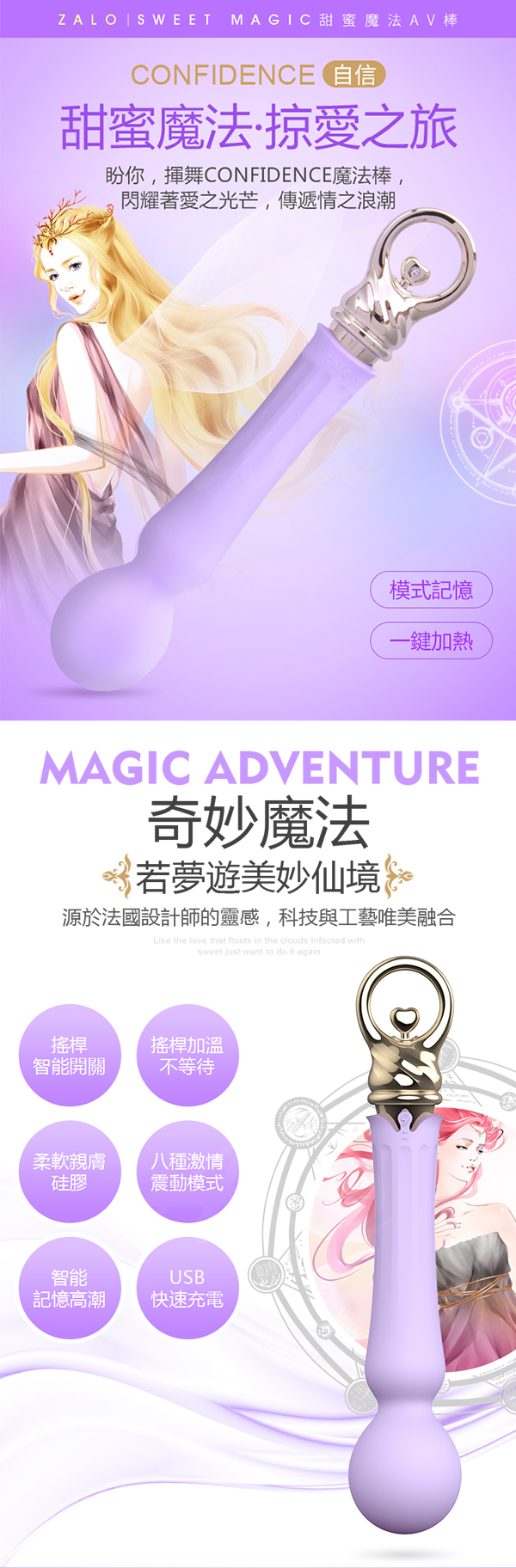 .商品名稱:法國ZALO 甜蜜魔法系列 Confidence 自信 加熱 強力震動魔法按摩棒