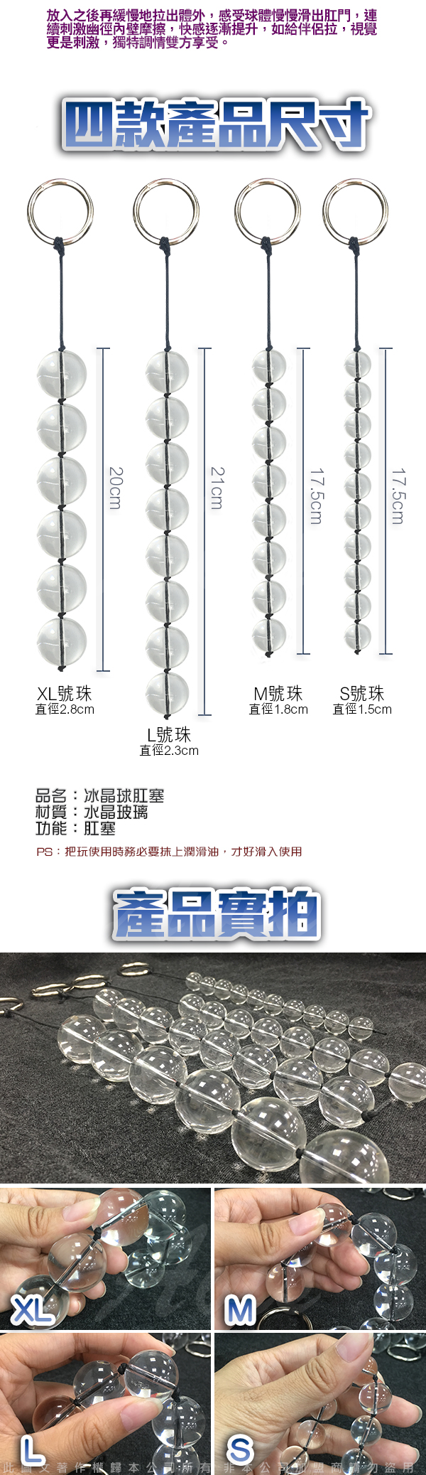 .商品內容:水晶之戀 玻璃後庭拉珠 男女通用 M 8連珠 直徑1.8CM