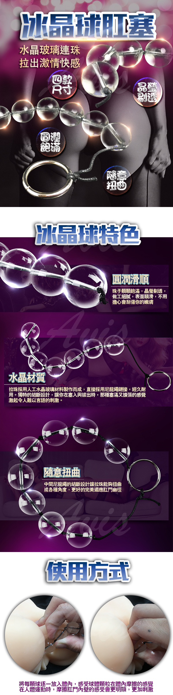 .商品內容:水晶之戀 玻璃後庭拉珠 男女通用 XL 6連珠 直徑2.8CM