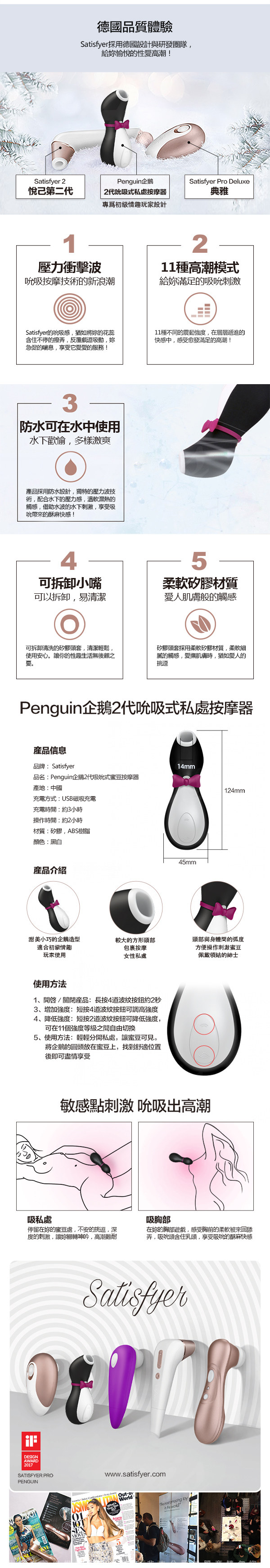 .商品名稱:德國Satisfyer Pro Penguin 2 搖擺小企鵝二代 強力吮吸陰蒂乳頭 口交高潮按摩器 黑