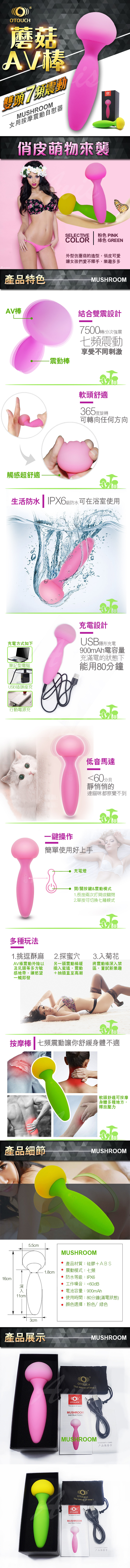 .商品內容:OTOUCH MUSHROOM 蘑菇 女用充電防水震動棒 AV按摩棒 粉色