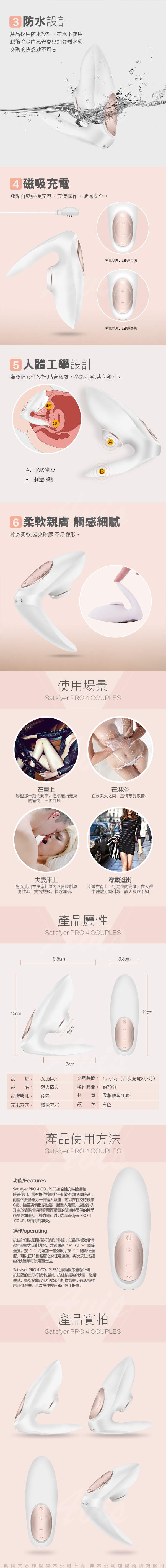 .商品內容:德國Satisfyer PRO 4 COUPLES 烈火情人 夫妻共震吮吸器