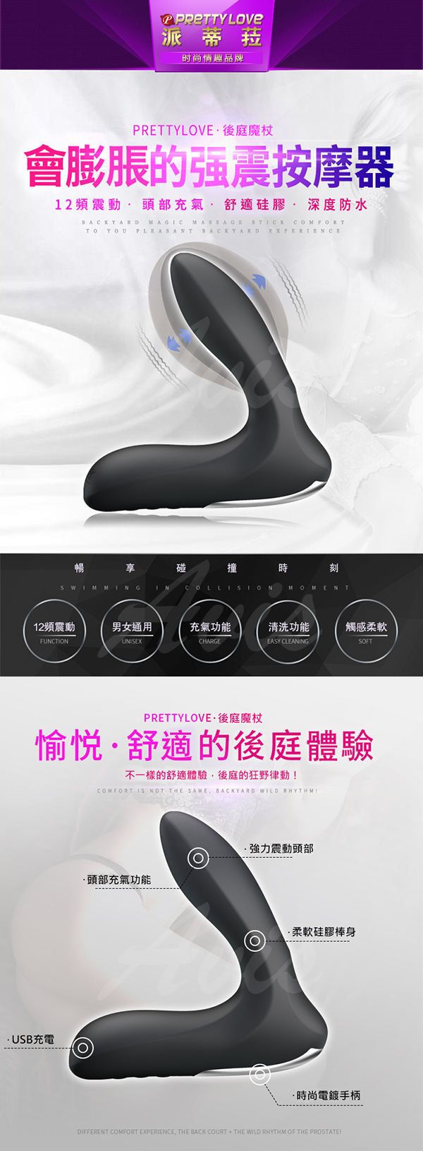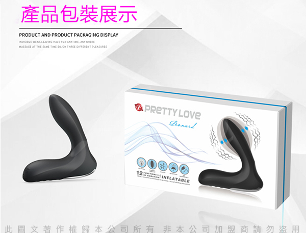 .主商品:PRETTY LOVE LEANARD 後庭魔杖 12段變頻頭部充氣震動矽膠按摩棒