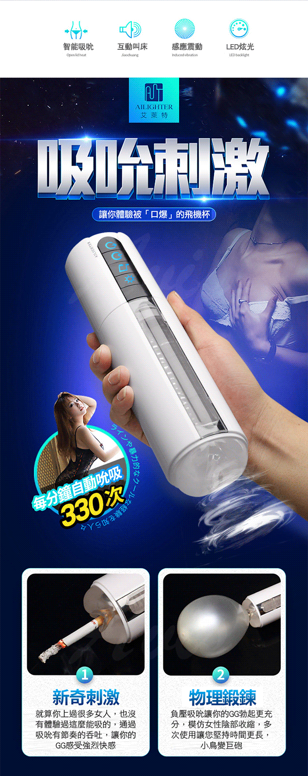.主商品:艾萊特AILIGHTER 吮吸杯 6頻智能吮吸6種床叫發聲飛機杯(白色標準版)