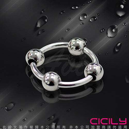 虐戀精品CICILY 金屬不銹鋼 四珠鎖精環 陽具陰莖環