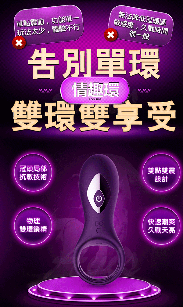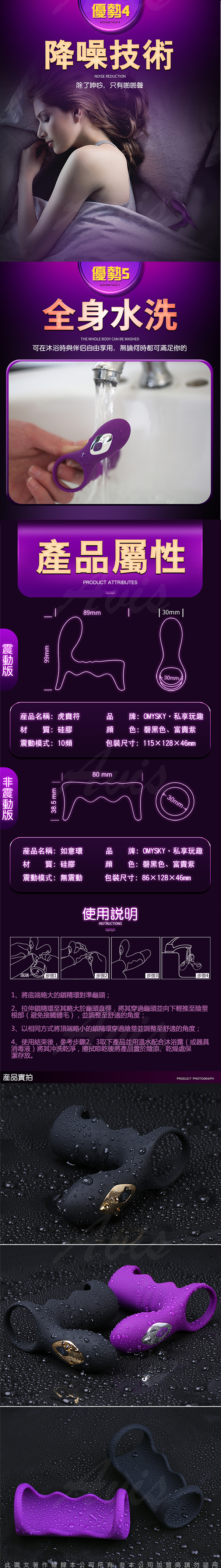 .商品名稱:omysky-虎賁符 雙震10段變頻柔軟矽膠鎖精環-黑色