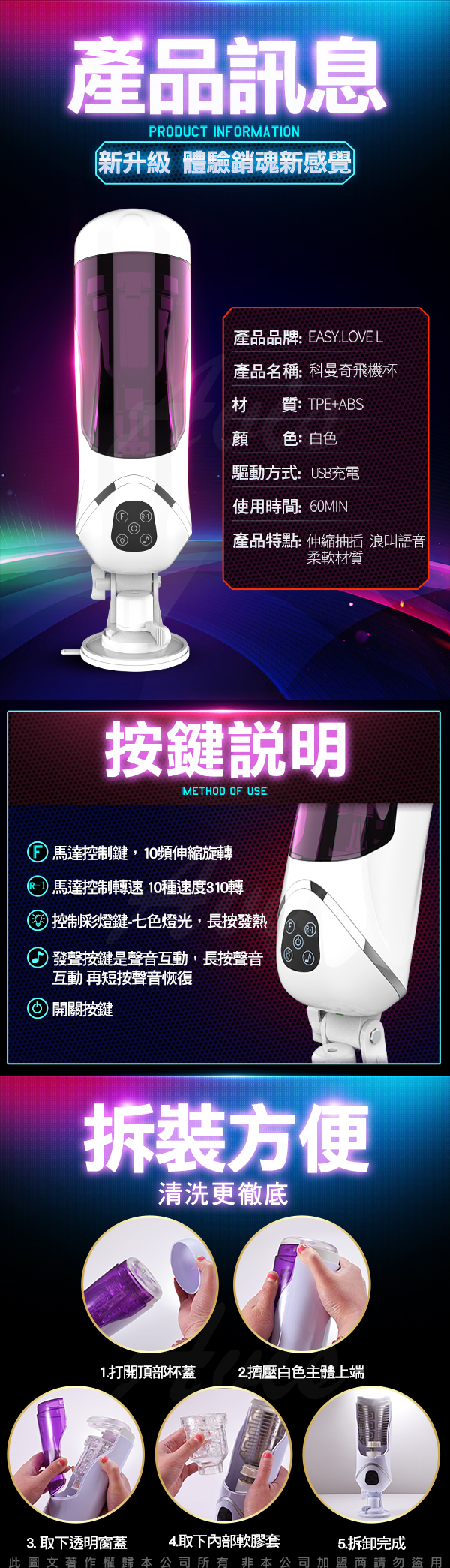 .商品名稱:科曼奇 智能活塞全自動伸縮抽插旋轉語音吸盤自慰杯