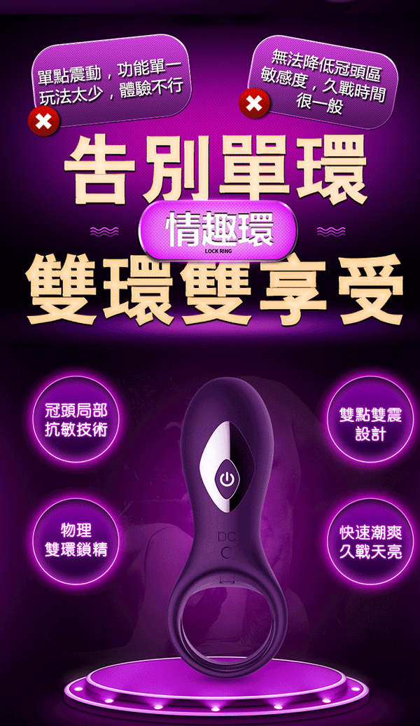 .商品名稱:omysky-虎賁符 雙震10段變頻柔軟矽膠鎖精環-黑色 遙控款