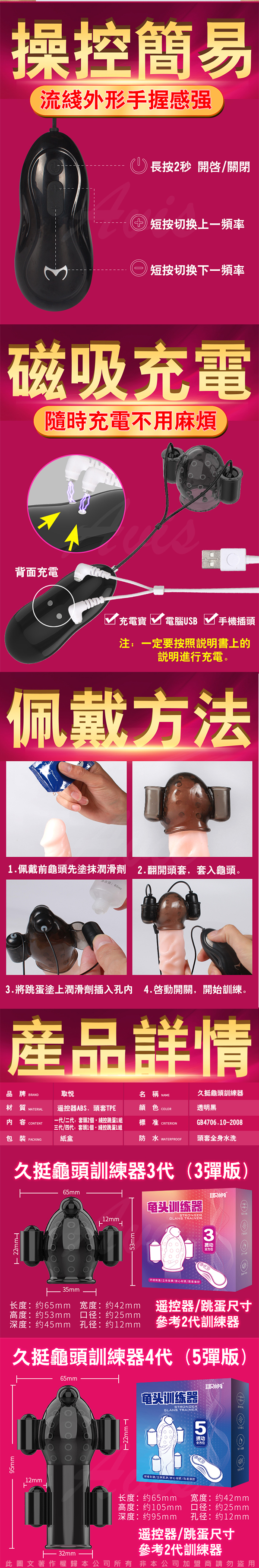 .商品名稱:取悅 久挺 12段變頻全方位龜頭訓練器 第四代 5彈充電版
