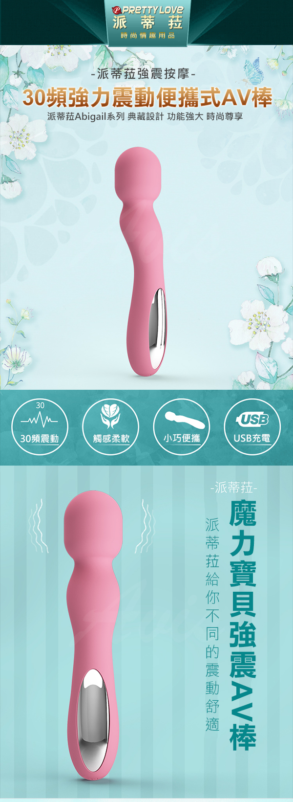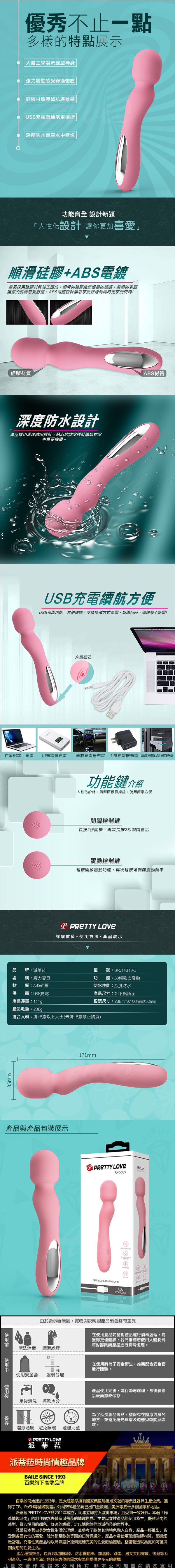 .商品名稱:PRETTY LOVE 派蒂菈 Gladys 格拉迪斯之魔力寶貝 強震按摩 30變頻究極AV棒 USB充電+深度防水