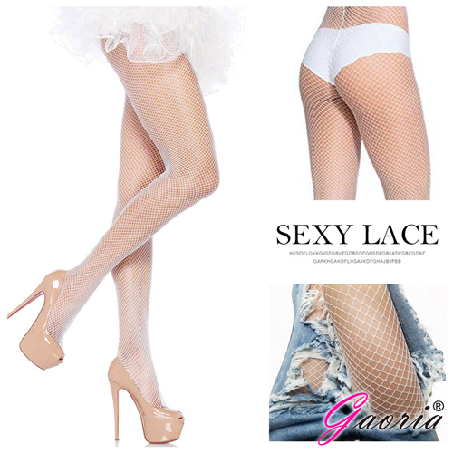 【Gaoria】網眼襪 鏤空連褲襪 牛仔褲打底襪 漁網襪 白 中網