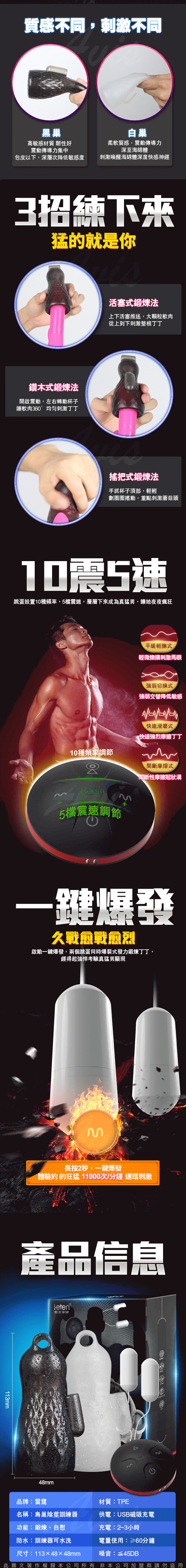 .主商品:Leten 鳥巢 5速10頻陰莖雙震訓練器套裝