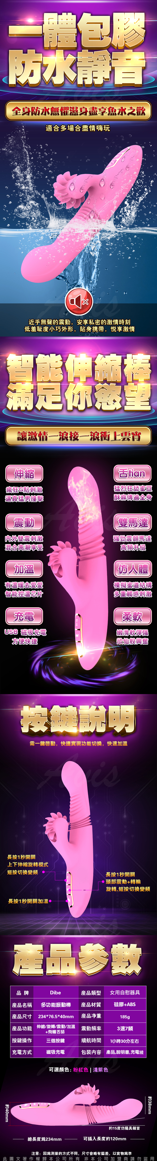 .主商品:Dibe-舌浪旋風 智能風輪加溫伸縮按摩棒