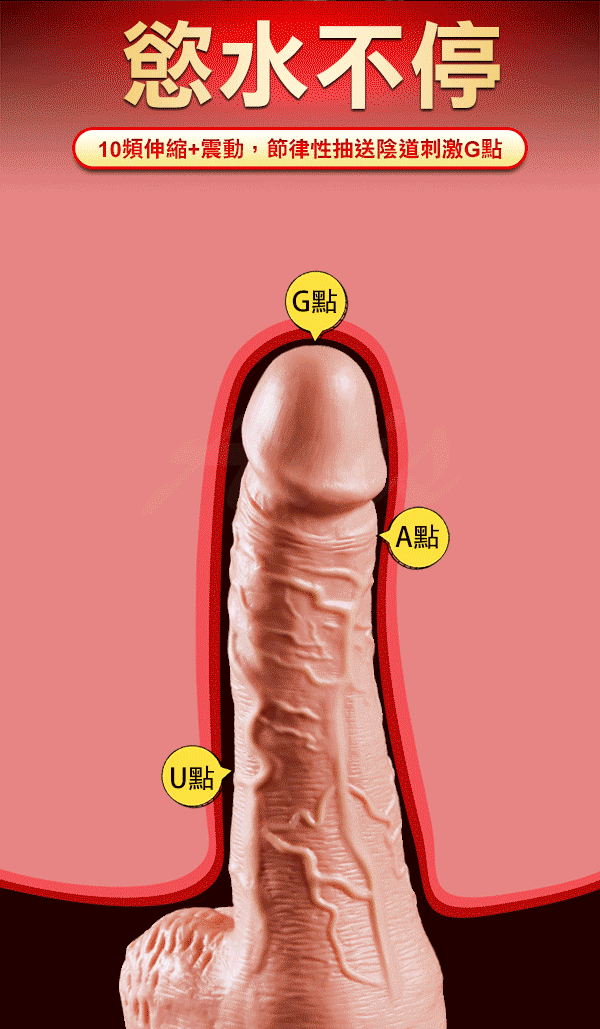 香港久興-肌肉真莖 全自動活塞USB供電 10頻震動逼真老二棒