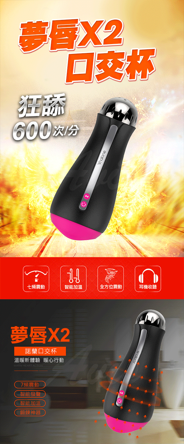 .主商品:香港Nalone-夢唇X2 7段變頻加溫震動叫春自慰杯