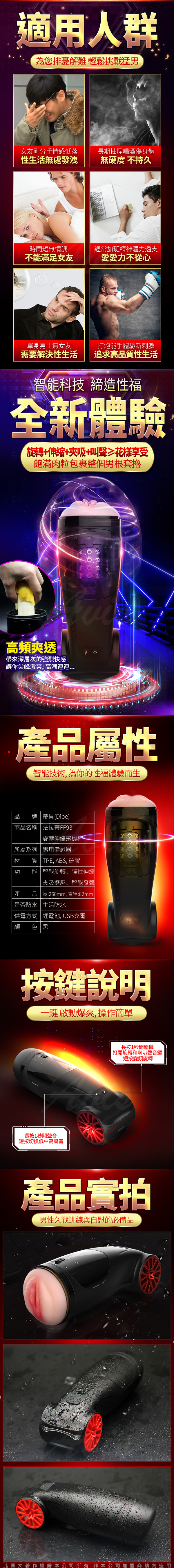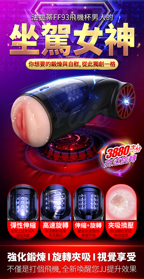 .商品內容:Dibe-法拉蒂FF93 7段變頻伸縮旋轉叫床電動自慰杯