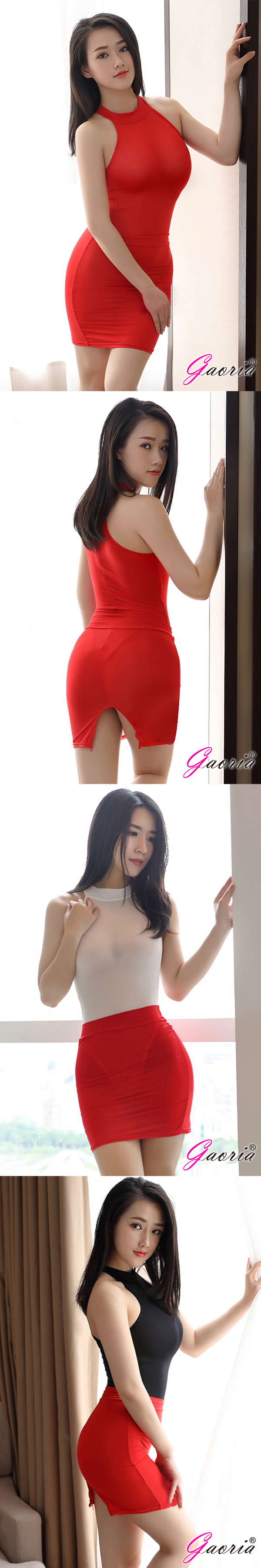 .商品內容:Gaoria 性感絲滑 透明後開叉緊身裙 半身裙 包裙 紅