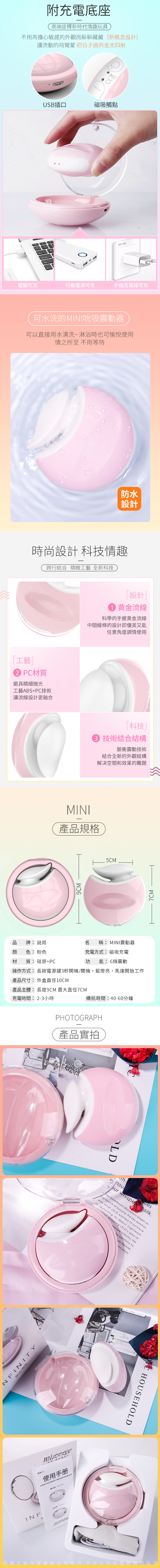 .主商品:Mini 6段變頻聲波震動 粉餅盒造型 磁吸充電矽膠震動器