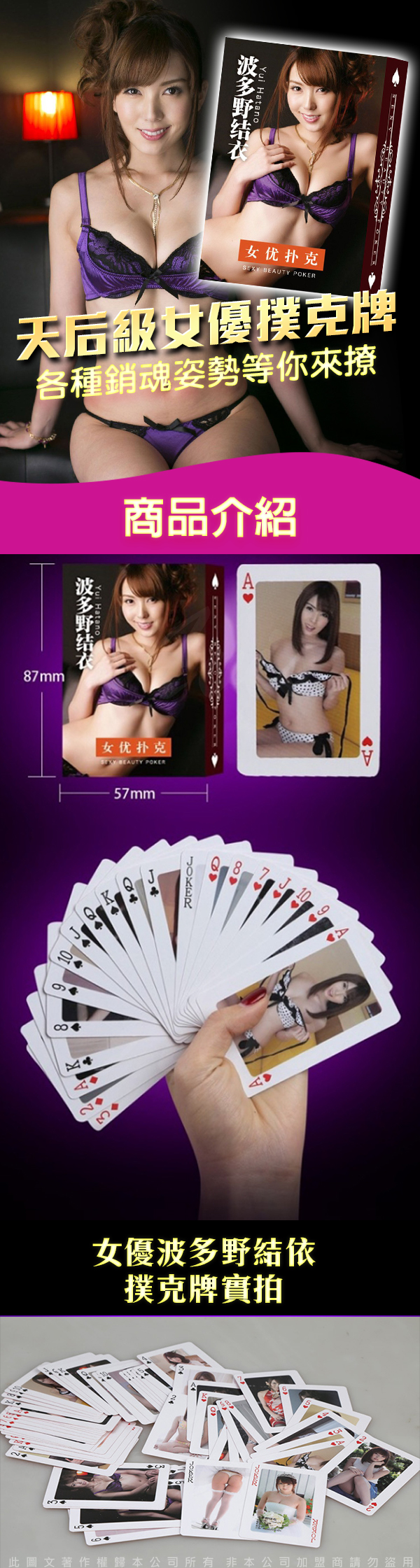 .商品名稱:波多野結衣 女優美圖撲克牌 趣味酒店遊戲