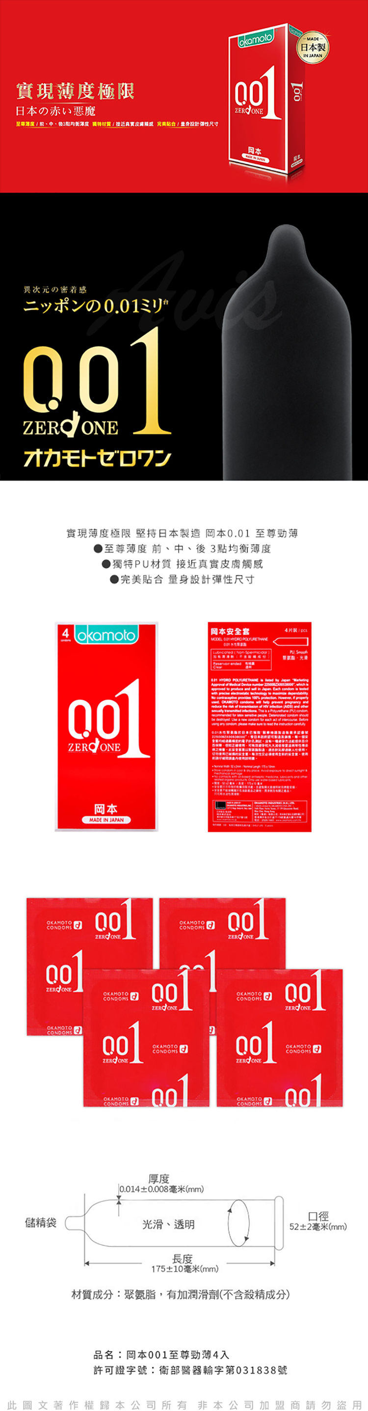 okamoto岡本OK 001至尊勁薄保險套 4片裝