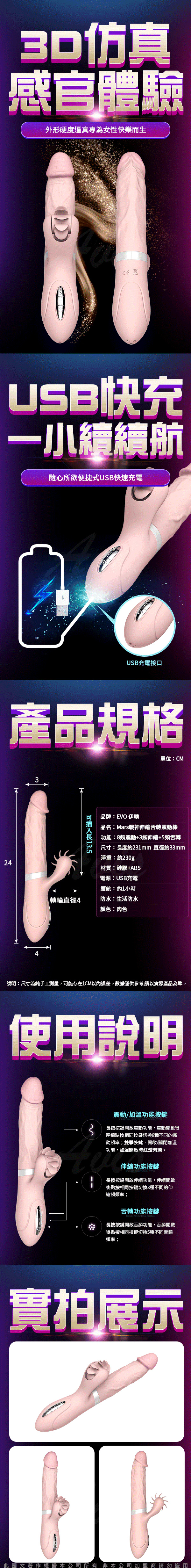 .主商品:EVO-戰神 伸縮舌舔 智能加溫震動按摩棒