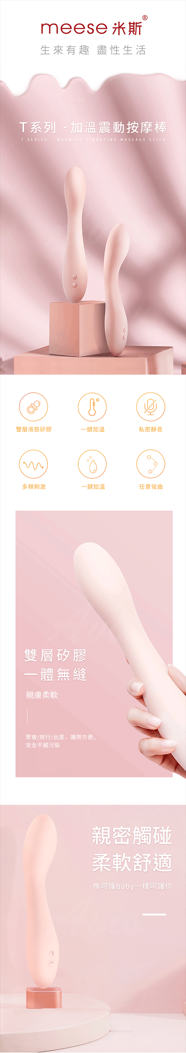.主商品:MEESE米斯-T系列 液態硅膠 女用G點 智能加溫按摩棒