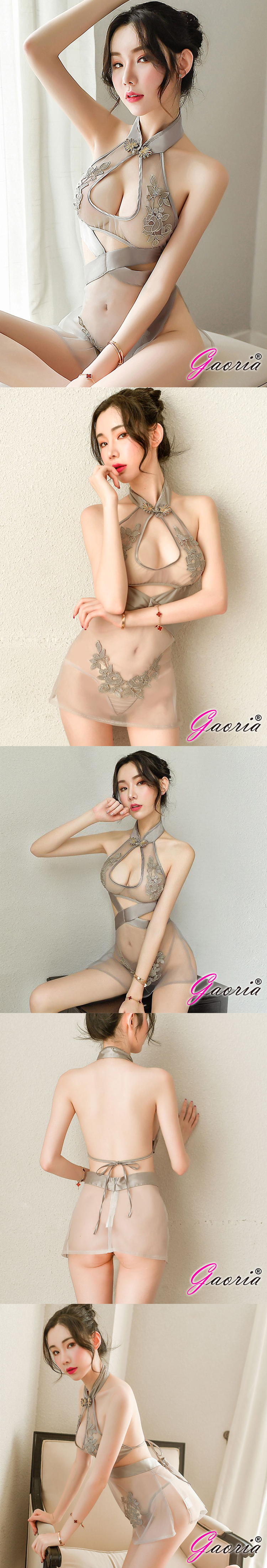 · 商品名稱:【Gaoria】曖昧上海 性感蕾絲開衩制服誘惑網紗透視古典刺繡旗袍 情趣睡衣 灰